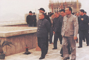 | 1984年(nián),鄧小平同志南(nán)巡時,登上集團國(guó)商大(dà)廈,俯瞰深圳全景 | 1988年(nián),李鵬同志視察集團吉光(guāng)電子有限公司 |