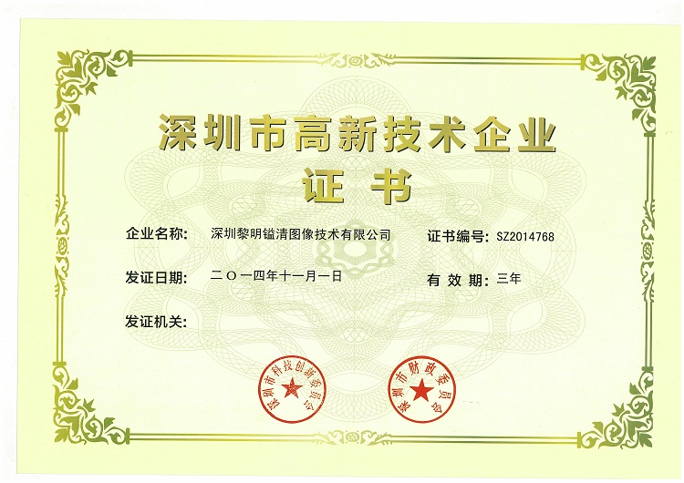 發布日(rì)期:2015/1/19 18:55:07 | 浏覽次數:5959 來(lái)源:特發黎明镒清公司 張志彬近日(rì),深圳黎明镒清圖像技術(shù)有限公司獲得(de)由深圳市科(kē)技創新委、深圳市财政委聯合頒發的《高新技術(shù)企業證書(shū)》,标志着黎明镒清正式通過了深圳市高新技術(shù)企業認定,成爲深圳市級高新技術(shù)企業。
