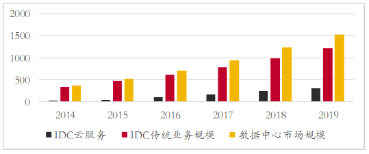 圖表 1 2014-2019年(nián)我國(guó)數據中心市場需求情況